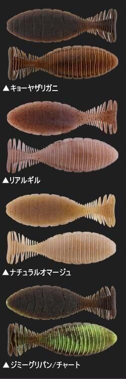 フィッシュイーターが強烈に反応するスパイラルフォールを演出します。その際、特殊デザインのテールが自発的にアクションします。
