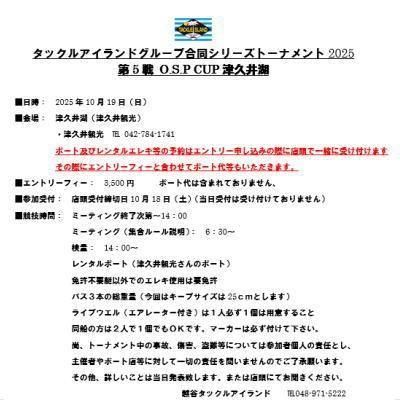 ▼ 2025年10月19日(日)開催 タックルアイランドトーナメント 第5戦津久井湖OSPカップエントリー